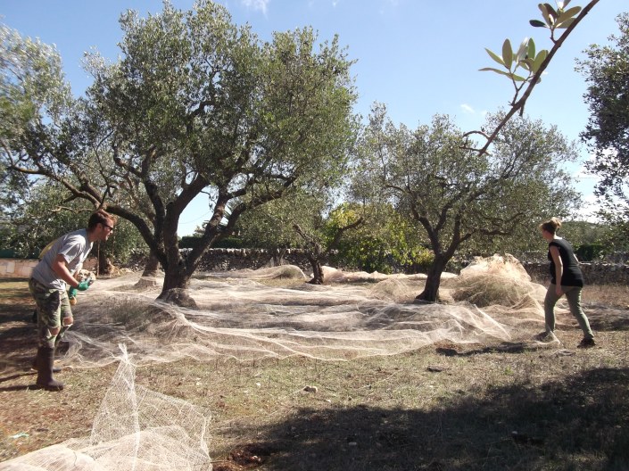 This was the most productive visit, planting 15 hazelnut trees, building a wooden frame for the eating grapes and laying the nets for the olive harvest.